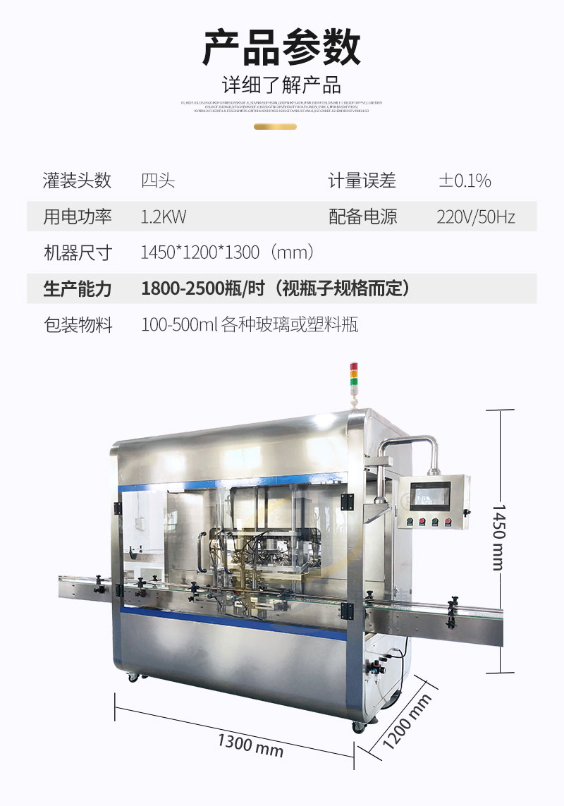全自動(dòng)四頭辣椒醬灌裝機(jī)適合中小口徑三旋、四旋玻璃瓶調(diào)味醬的分裝,適合醬料、含顆粒黏稠物料的灌裝,物料接觸部分均采用