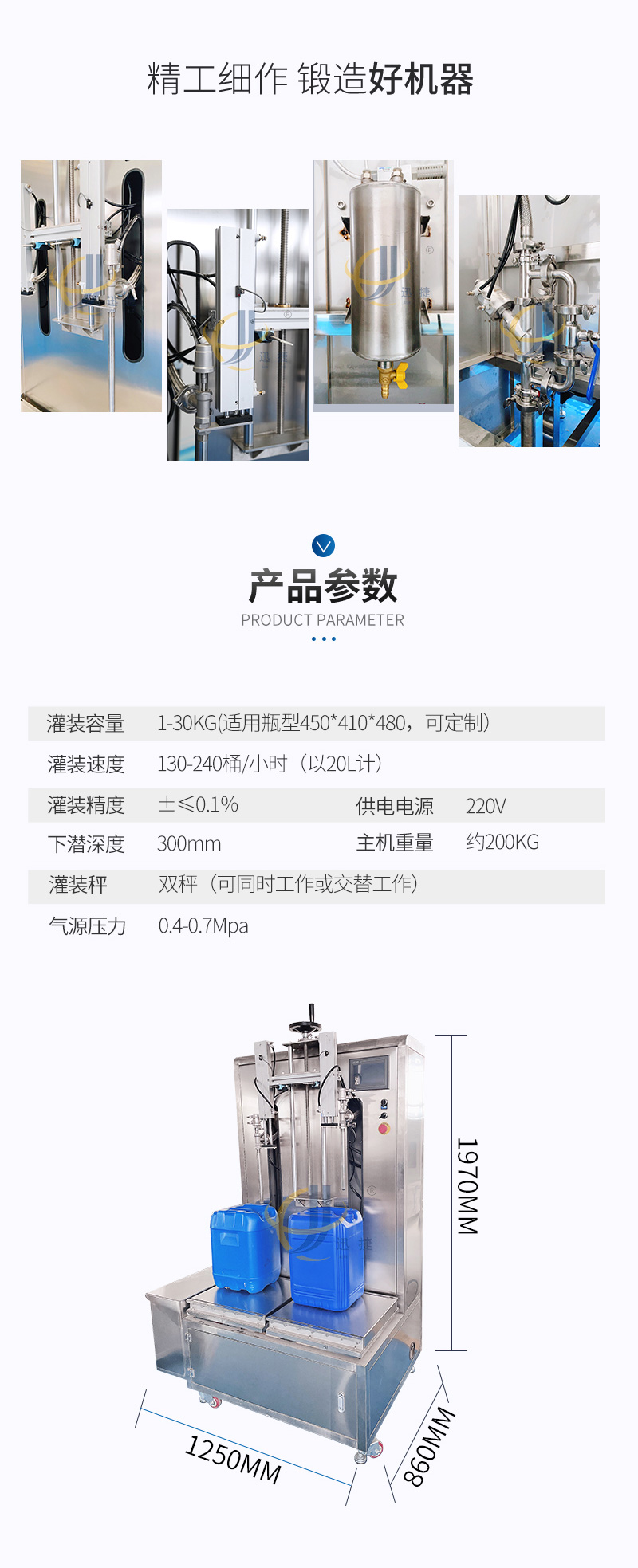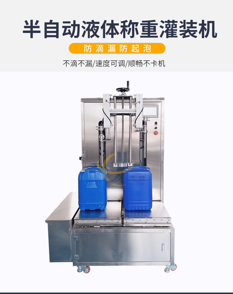 半自動液體稱重灌裝機(jī)適用于各種水劑以及高泡類液體的灌裝。如:飲料、醋、醬油、液體化妝品、蛋白液、玻璃水等。