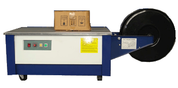 Description: The Da Baoji for semi-automatic Da Baoji, packing table lower, heavier apply to all kinds of packaged goods, such as cardboard boxes, postal parcels, books and magazines, and other items of lesser Banding package.
