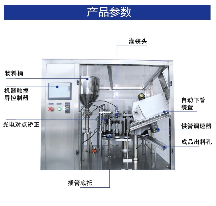順利準(zhǔn)確地注入軟管中,并完成管內(nèi)熱風(fēng)加熱、封尾和打批號(hào)、生產(chǎn)日期等。